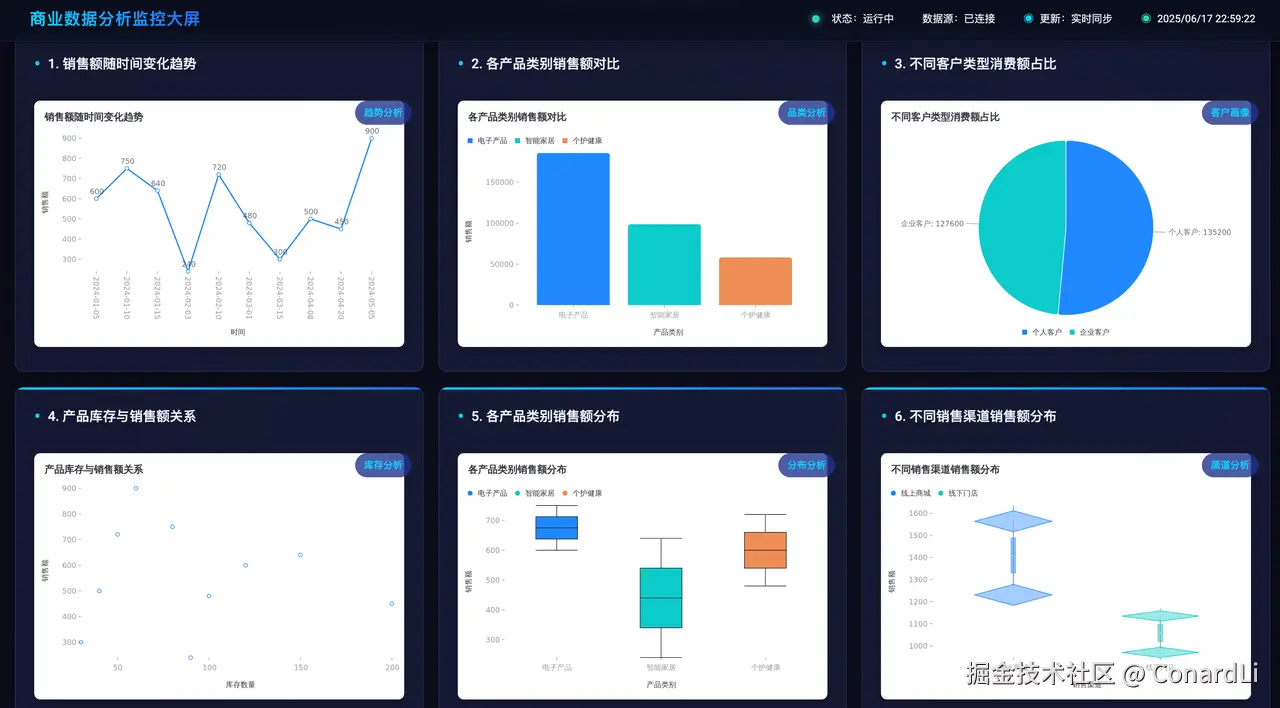 提示词:借助 Sequential Thinking 进行思考,详细分析图表里的各种特征,选择 mcp-server-chart 中合适的图表,帮我将数据进行全面可视化,将生成的图表最终用一个 HTML 进行展示,要求页面美观,展示维度丰富、全面(至少包含 10 个维度的图表展示)。