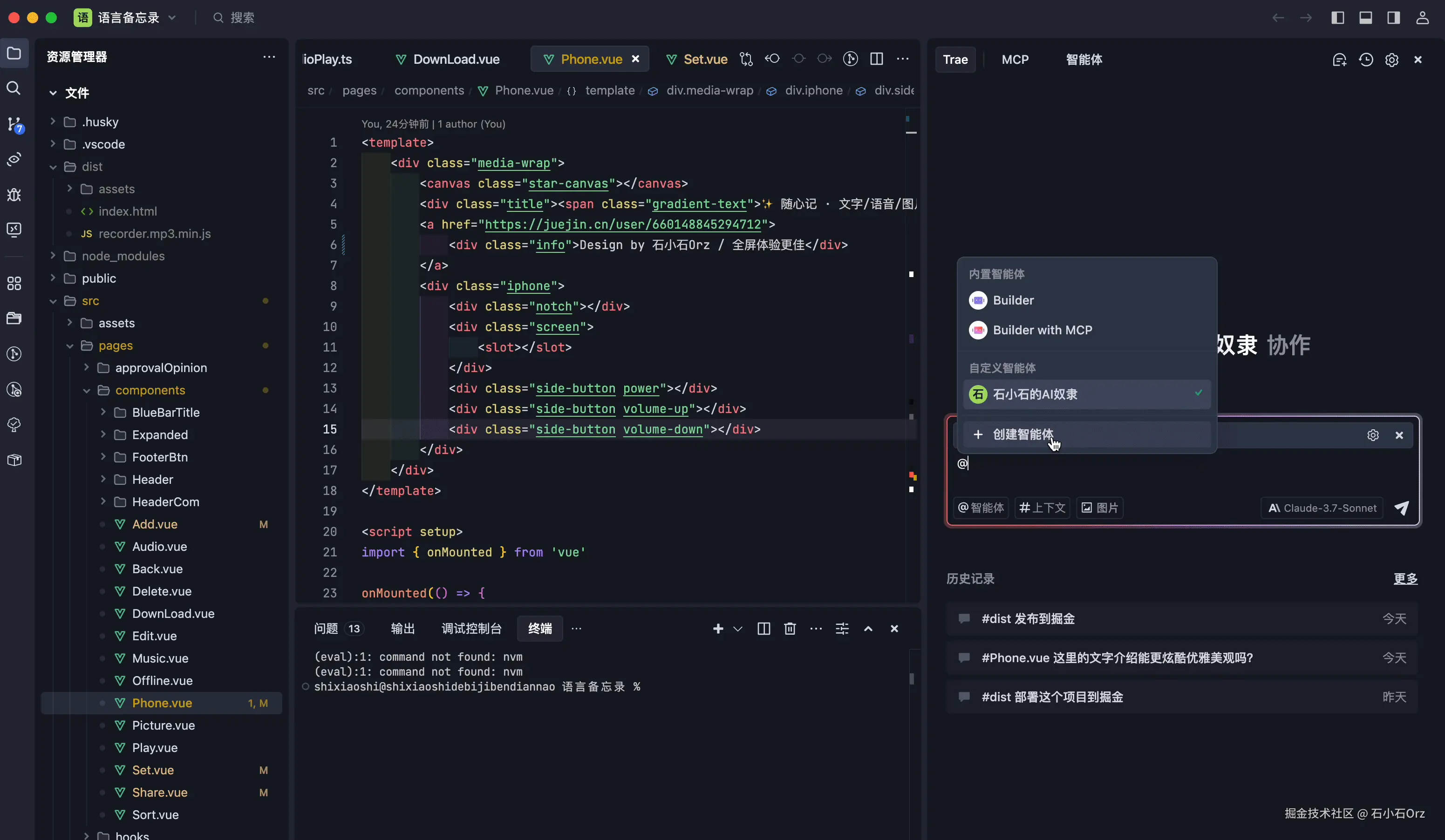 要使用AI实现这样一个小程序,首先要选取合适的AI编程工具。比如字节的Trae或国外的Cursor都行,由于要使用掘金的MCP一键部署,还是建议使用Trae。