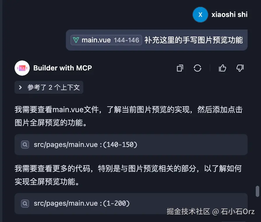 我们可以用过上下文协议,选中某个文件,将代码生成在指定位置: