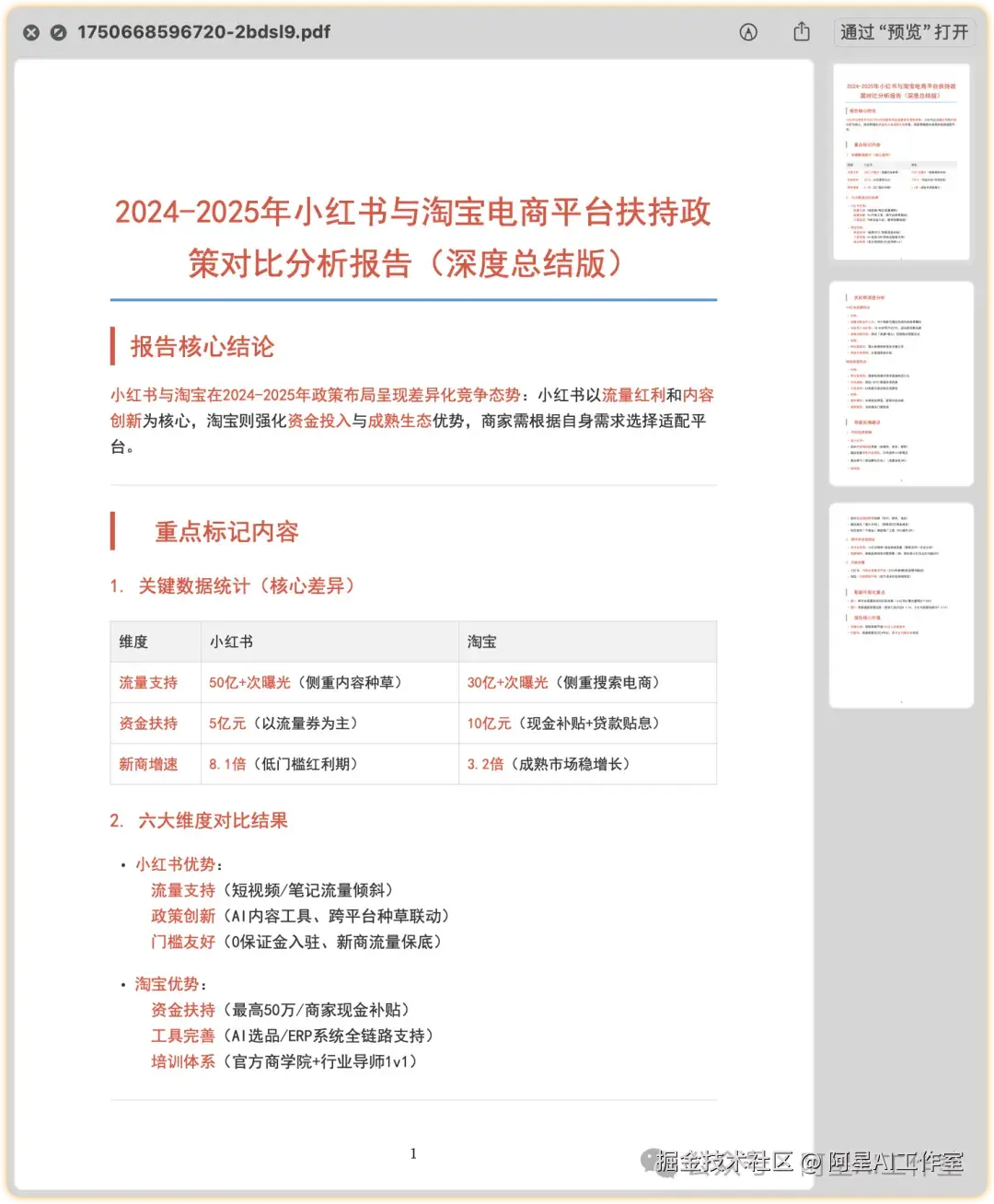 帮我搜索小红书电商和淘宝电商平台扶持政策对比资料并形成报告