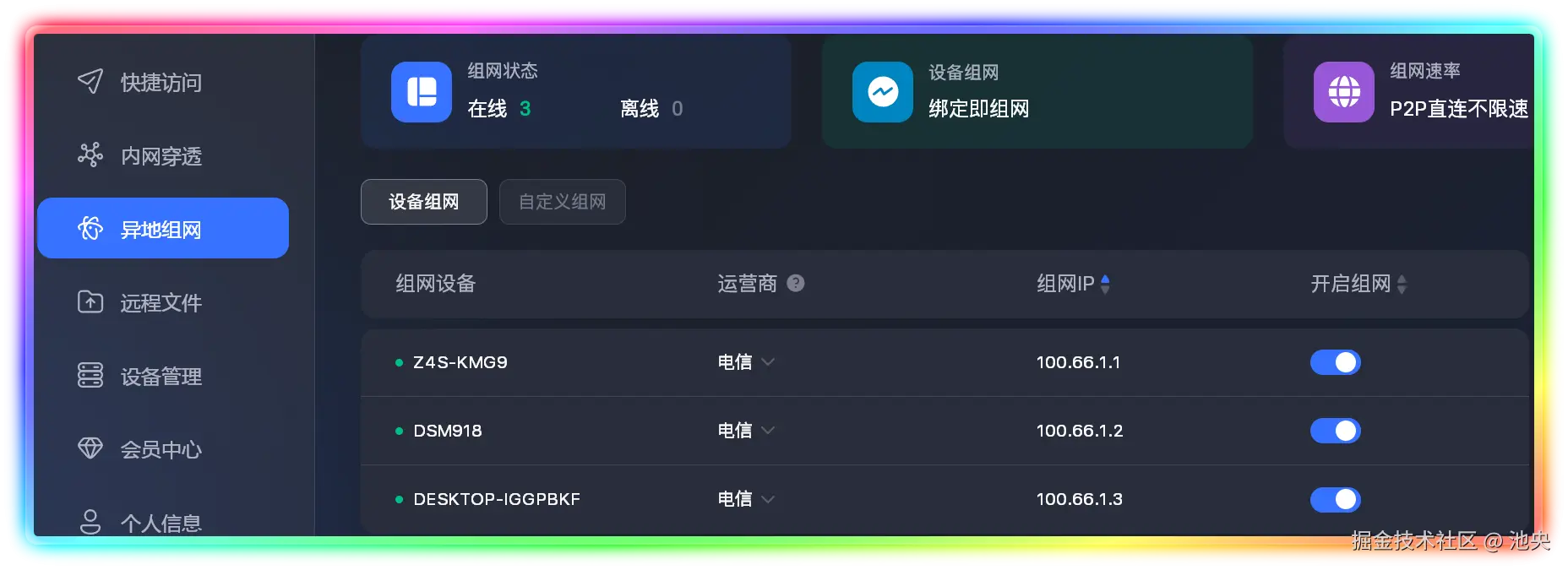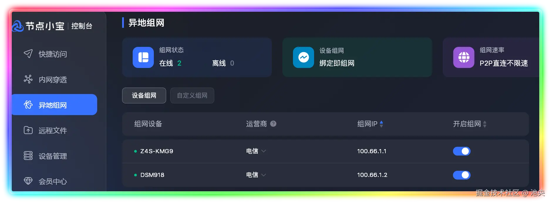 - 快到不像远程:P2P 加密直连,访问 NAS、远程桌面都如丝般顺滑。