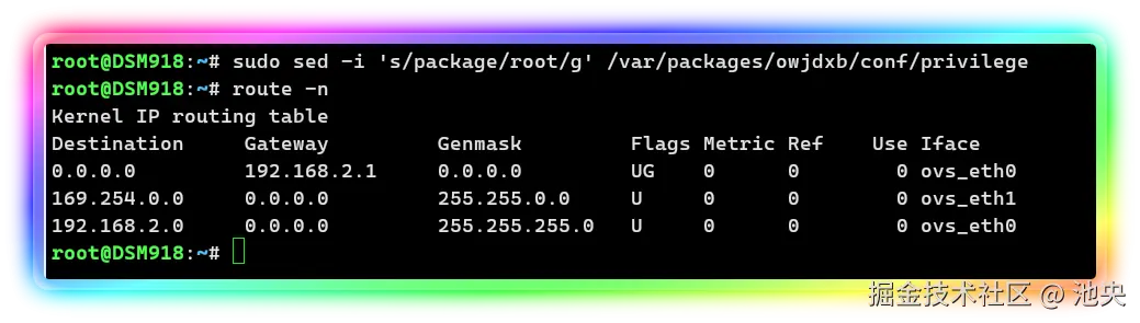sudo sed -i 's/package/root/g' /var/packages/owjdxb/conf/privilege