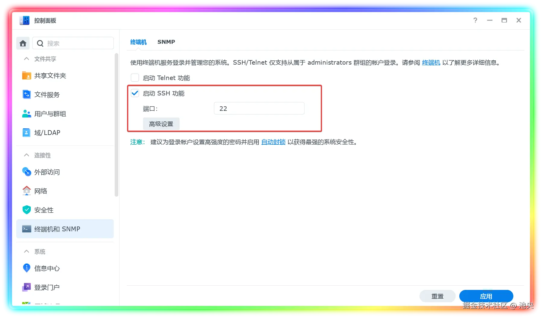 首先在控制面板启用 SSH