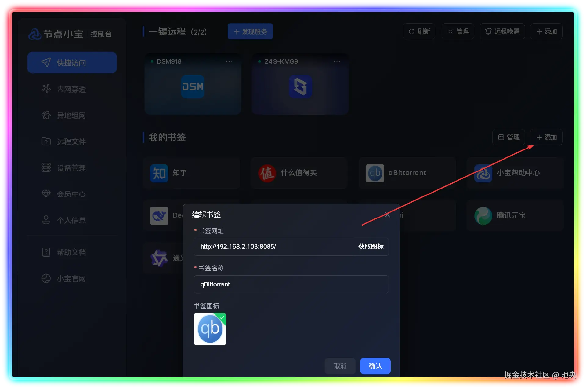 ▼【快捷访问】本质就是导航工具栏,像我们玩 NAS 通常都会部署 Heimdall 、Van-Nav 等应用,访问各种应用会更加方便。