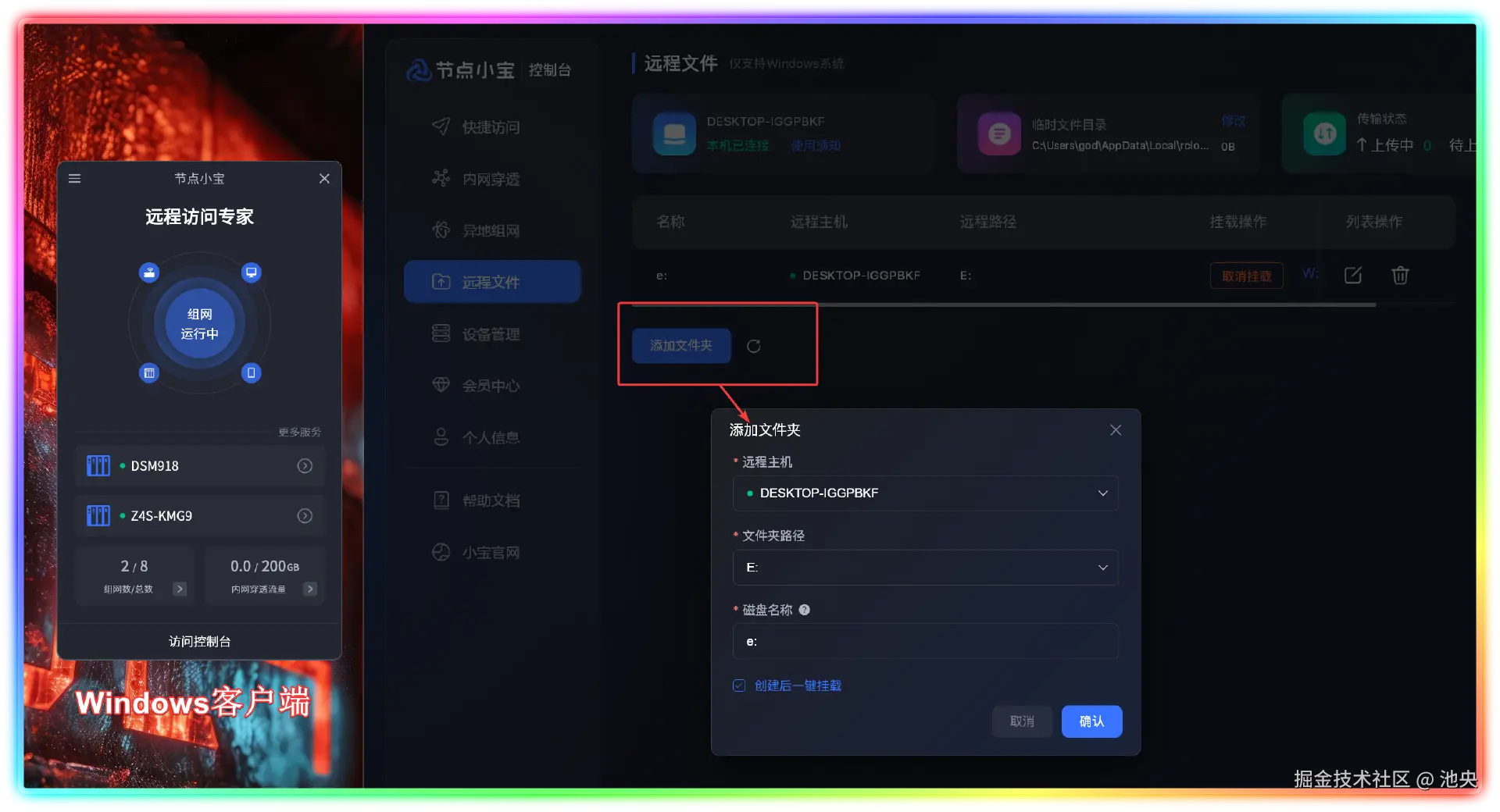 ▼想在公网环境访问 Windows 电脑的话,众所周知有多麻烦,但借助节点小宝的【远程文件】功能可以轻松实现