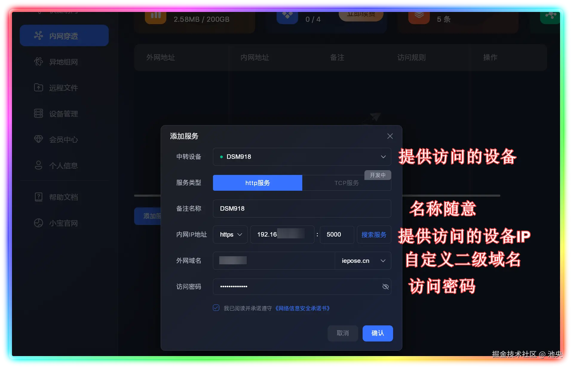▼内网穿透是节点小宝的核心功能,设置起来也是相当无脑,只需要参考下图设定即可