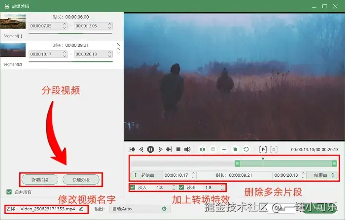 步骤3:录制完成之后,我们就可以在预览页面看到刚才录制的视频了。如果你还想给他加点特效,可以打开 “高级剪辑” 工具。