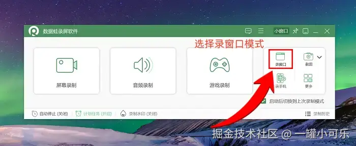 步骤1:屏幕录制在哪里打开?点击启动数据 蛙录屏软件,在首先出现的页面中,自由选择录制的模式,今天我们先来讲一下 “窗口录制” 模式。