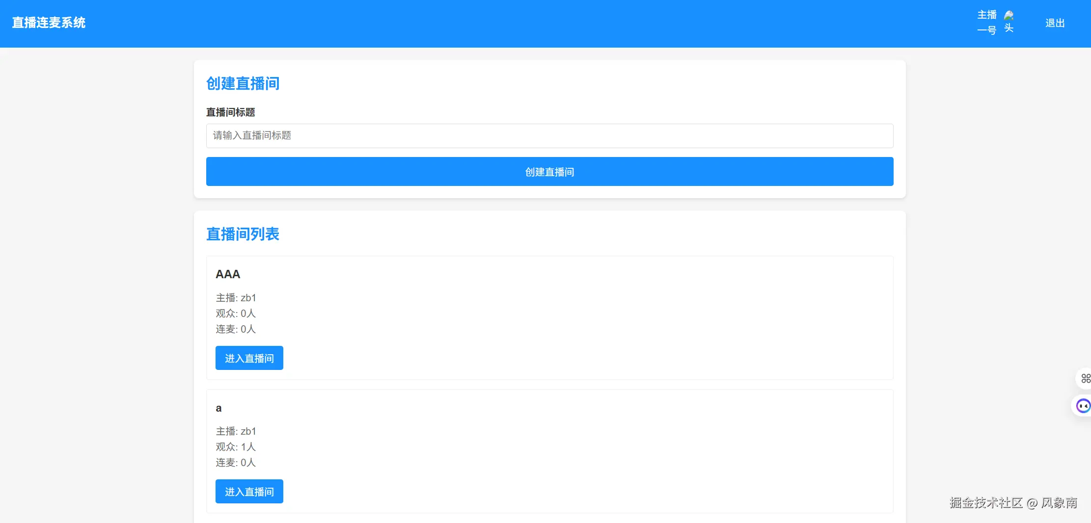打开一个浏览器窗口,访问http://localhost:8080/login.html 输入账号 zb1, 密码 zb1登录系统创建直播间