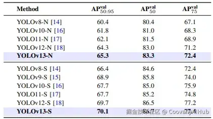 根据论文,YOLOv13 在 MS COCO 和 Pascal VOC 两大数据集上实现了全面领先: