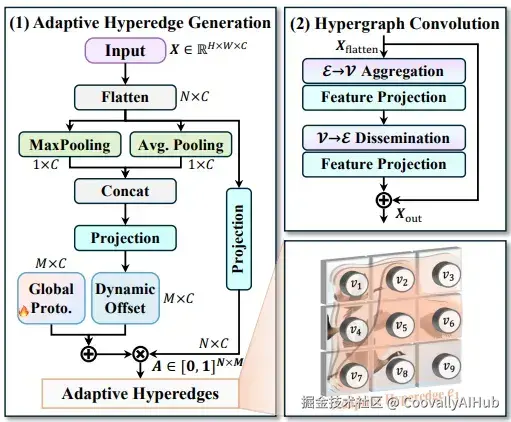 用超图机制(HyperACE) ,替代以往只能处理局部关联的卷积和自注意力,让模型能识别出多个物体之间复杂的潜在关系。