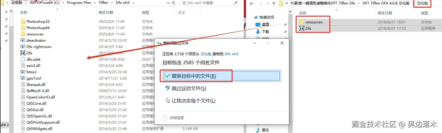 打开汉化包文件夹,将里面的文件复制到C:\Program Files\Tiffen\Dfx v4.0下替换