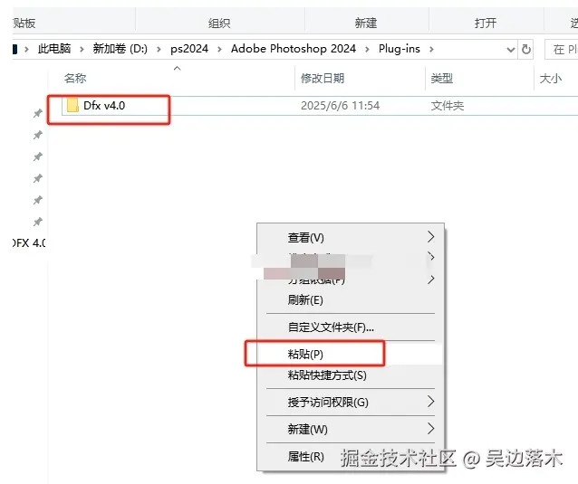 在Plugins文件夹下鼠标右键点击粘贴,然后Dfx v4.0文件夹粘贴出来