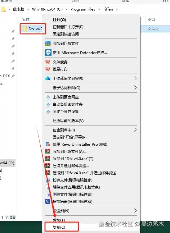 选择Dfx v4.0文件夹,鼠标右键点击复制