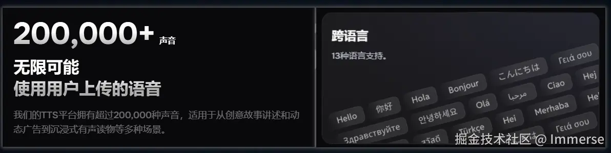 而且它支持 200000+ 种声音,支持 13 种语言支持。
