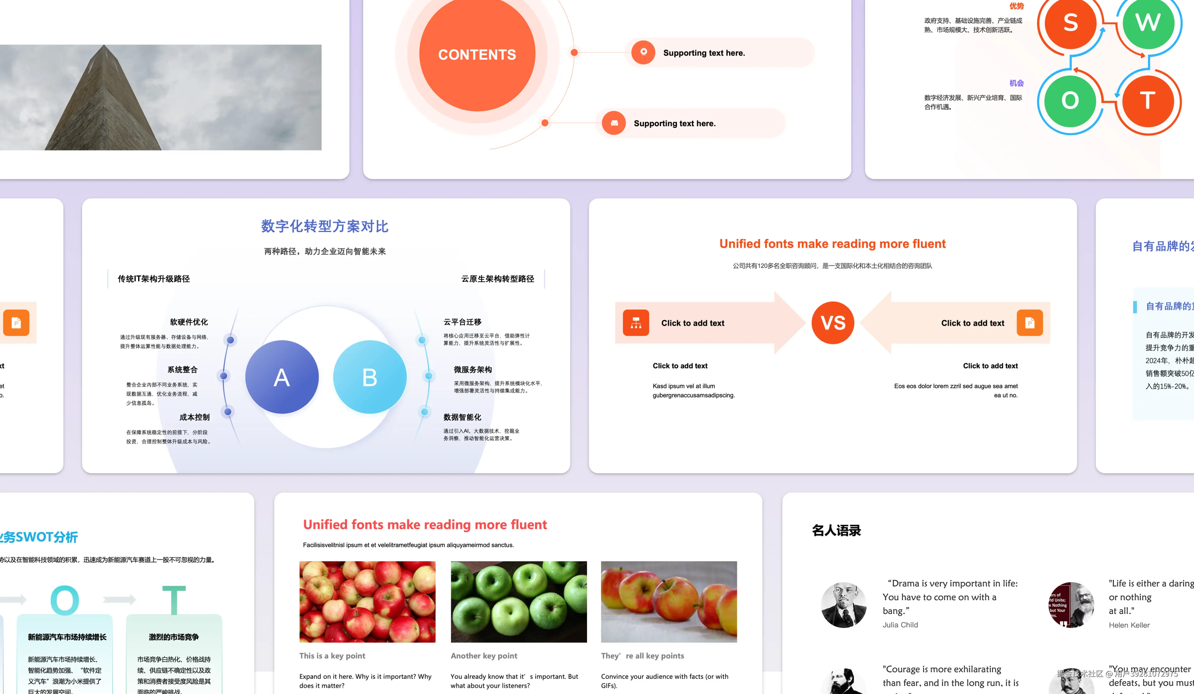 歌者会根据每页内容智能匹配最佳版式,如「单项图文」「多项对比」「数据图表」等,确保每一页幻灯片的内容信息传达清晰直观,表达更有力。