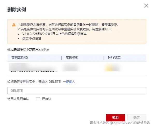 执行操作中的实例不能手动删除,只有在实例操作完成后,才可删除实例。