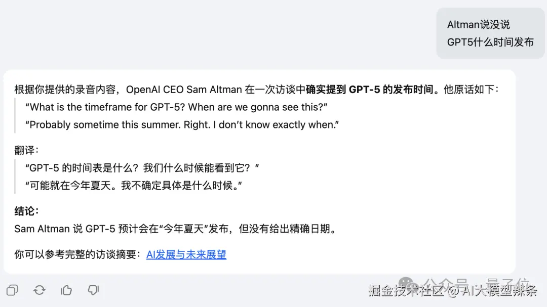 当然,想把奥特曼的播客写成一篇文章,光看总结是不够的,还需要针对其中的部分细节进行追问。