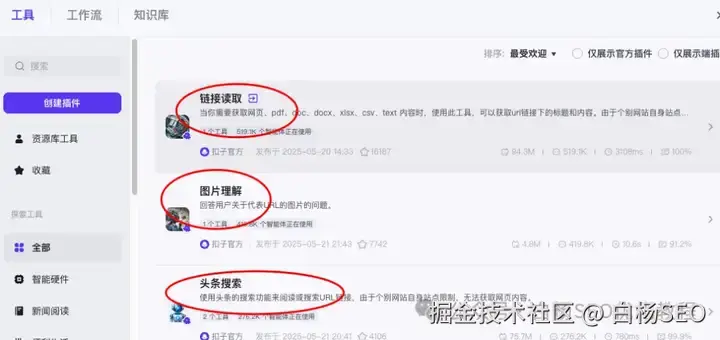 白杨SEO着重分享的是Coze扣子这个AI工作流平台哈,继续往下看。