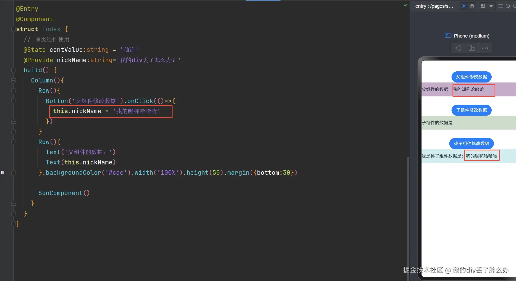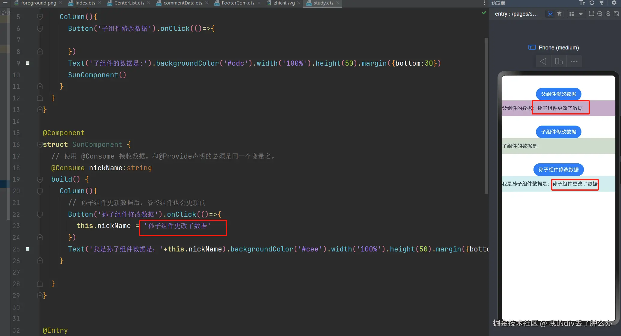 也就是说: @Provide和@Consume是双向的,数据变化后界面会自动更新视图