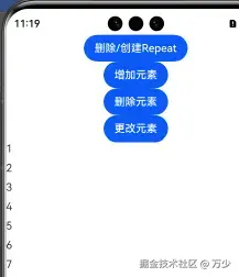 Repeat 组件非懒加载场景中,会在删除/创建子树时触发回收/复用。