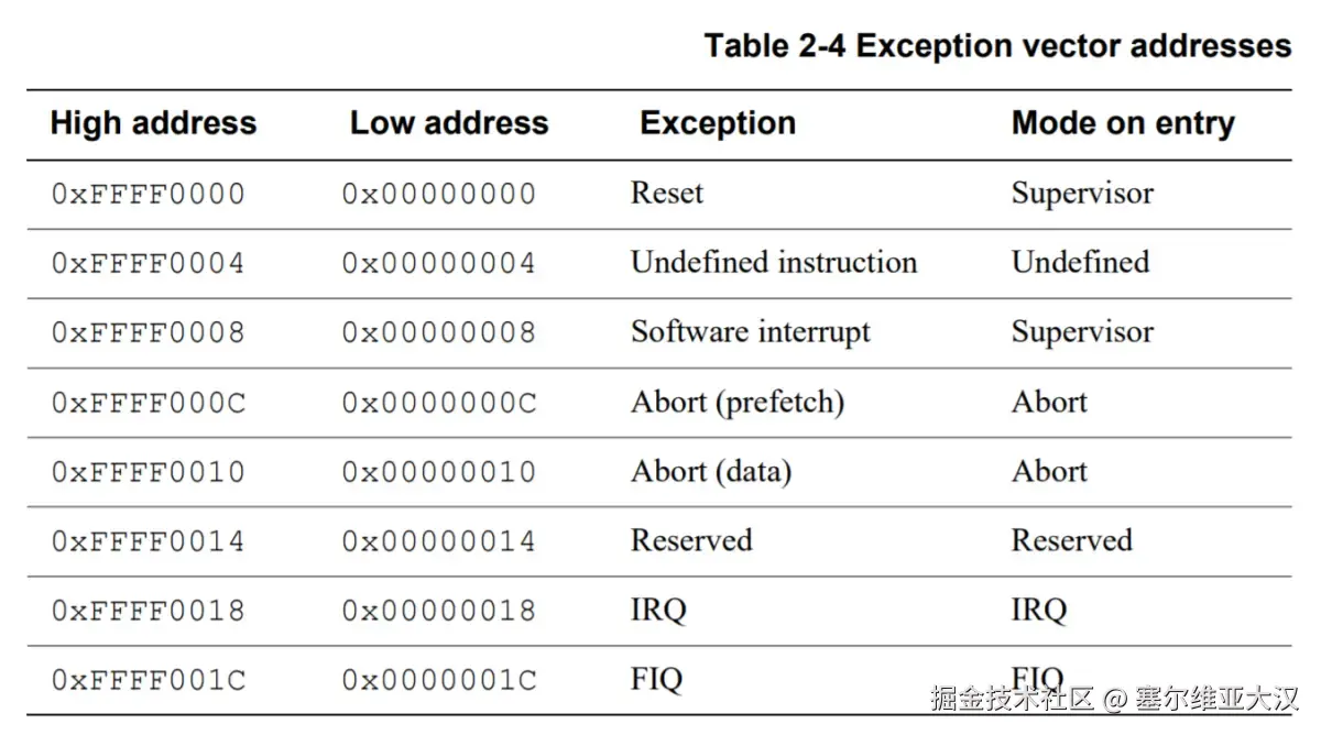 2.异常模式入口地址在哪?