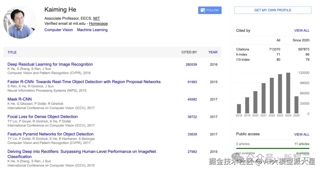 同时,他在计算机视觉和深度学习领域发表了一系列极具影响力的论文。截至目前,他的论文被引用次数超过71万次。