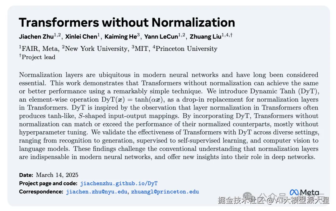 前段时间,他还联手Yann LeCun共同发现了一种没有归一化层的Transformer,仅用9行代码就实现了。