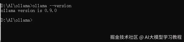 输入指令 ollama --version。如果显示了版本号,恭喜你安装成功了。