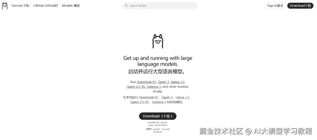 Ollama 是一个开源的大型语言模型(LLM)本地化部署和管理平台,旨在简化用户在本地设备上运行、交互和管理大模型的过程。简而言之,ollama的特点就是开源、支持所有开源模型、跨平台、指令简单。一、下载安装包访问 Ollama 官网 下载 OllamaSetup.exe