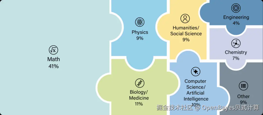 HLE 数据集包含 2500 道题目,覆盖数学、人文科学、自然科学等数十个学科,其中包含适合自动评分的选择题和简答题。该数据集旨在构建覆盖人类知识前沿的终极封闭式评估体系。