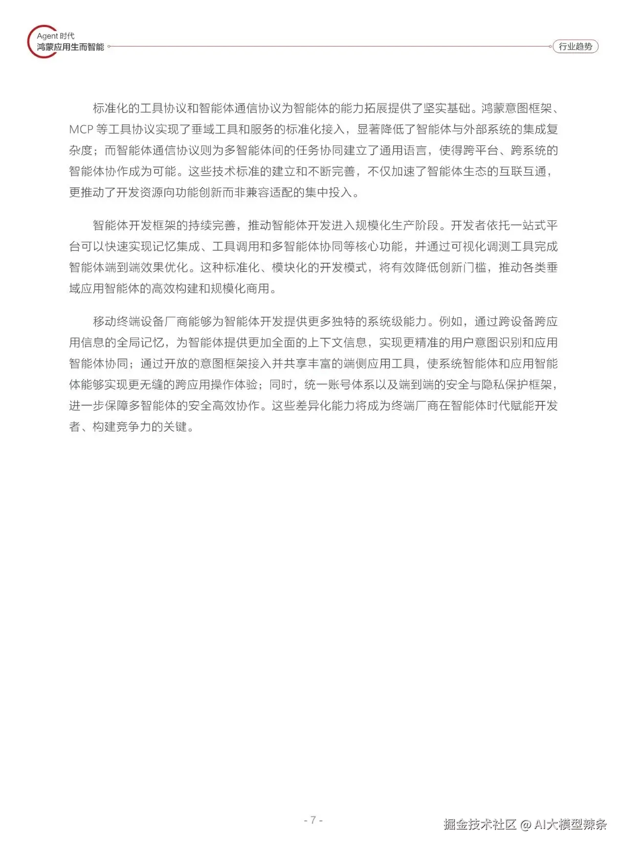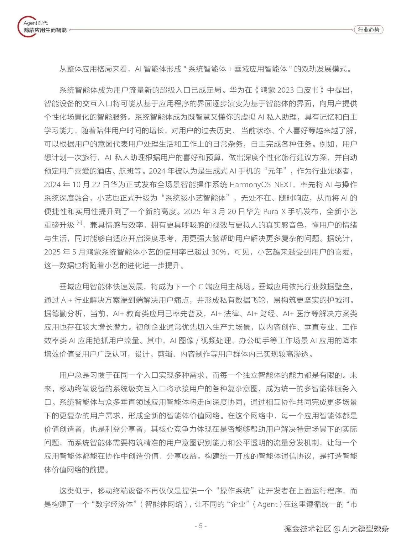 鸿蒙智能体的突破性在于其开创了“以人为中心”的操作系统新范式。通过分布式架构与原子化服务能力,实现跨终端、跨场景的智能协同。例如,在智能家居场景中,用户无需手动切换设备,鸿蒙可通过意图感知自动联动灯光空调、安防等设备,形成“服务随人动”的无缝体验;在工业领域,其微内核设计和高可靠性特性,为智能制造、智慧能源等场景提供了毫秒级响应的底层支撑。这种“软硬件解耦、服务原子化”的技术路径,使得终端设备从“功能容器”进化为“智慧体”,为AI应用的场景化落地开辟了全新空间。