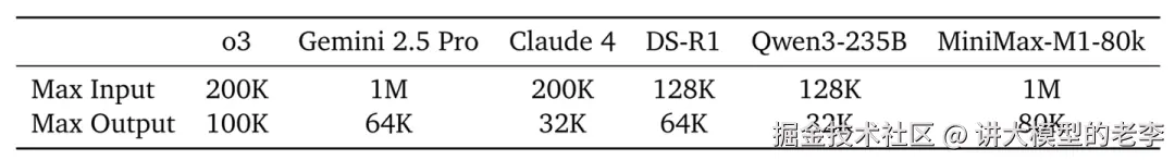 MiniMax-M1的输入token可达100万长度,输出token可达80K长度,是DeepSeek R1支持的上下文长度的8倍,和其他同类模型o3、Gemini 2.5 Pro、Claude 4等相比,也占明显优势,也就是说,MiniMax-M1就是目前上下文长度最大的推理模型。