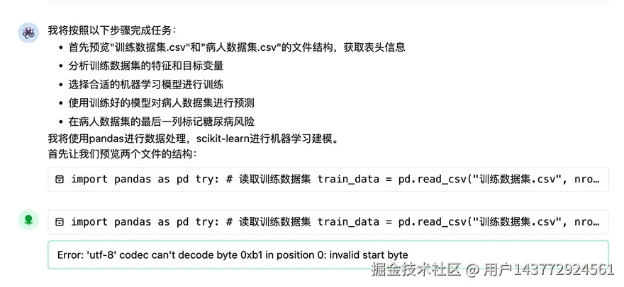 提示词:你是现在是一名医生,请读取并学习当前工作目录下"训练数据集.csv"文件中糖尿病患者的数据,学习后再读取"病人数据集.csv"中的数据,判断"病人数据集.csv"中哪些人具有糖尿病风险,并在最后一列标记出来。