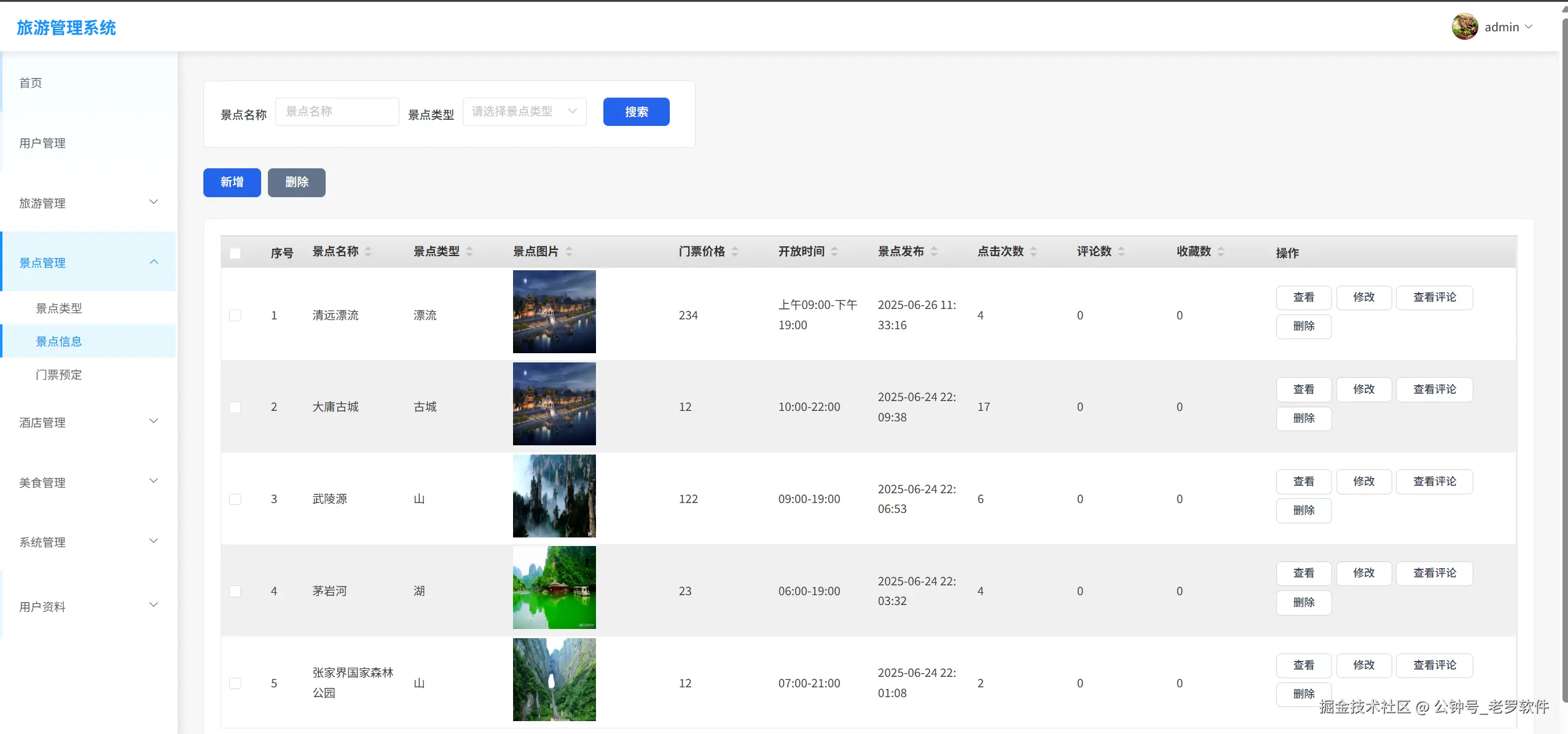 - 景点信息管理 :景点详细信息管理,包含图片、介绍等