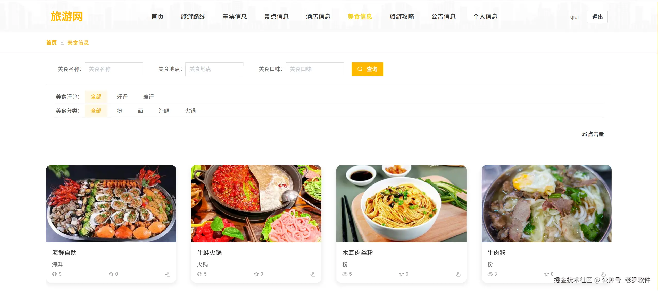 - 美食信息管理 :美食详细信息发布