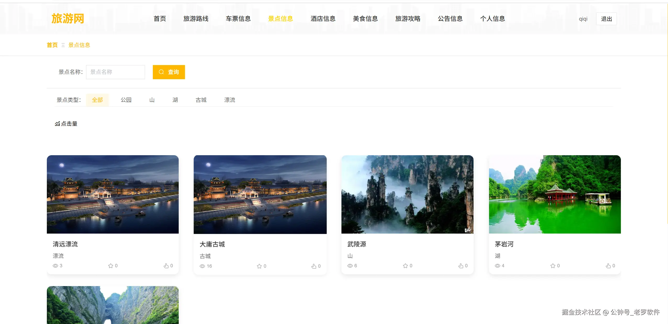 - 景点分类 :按类型浏览不同景点