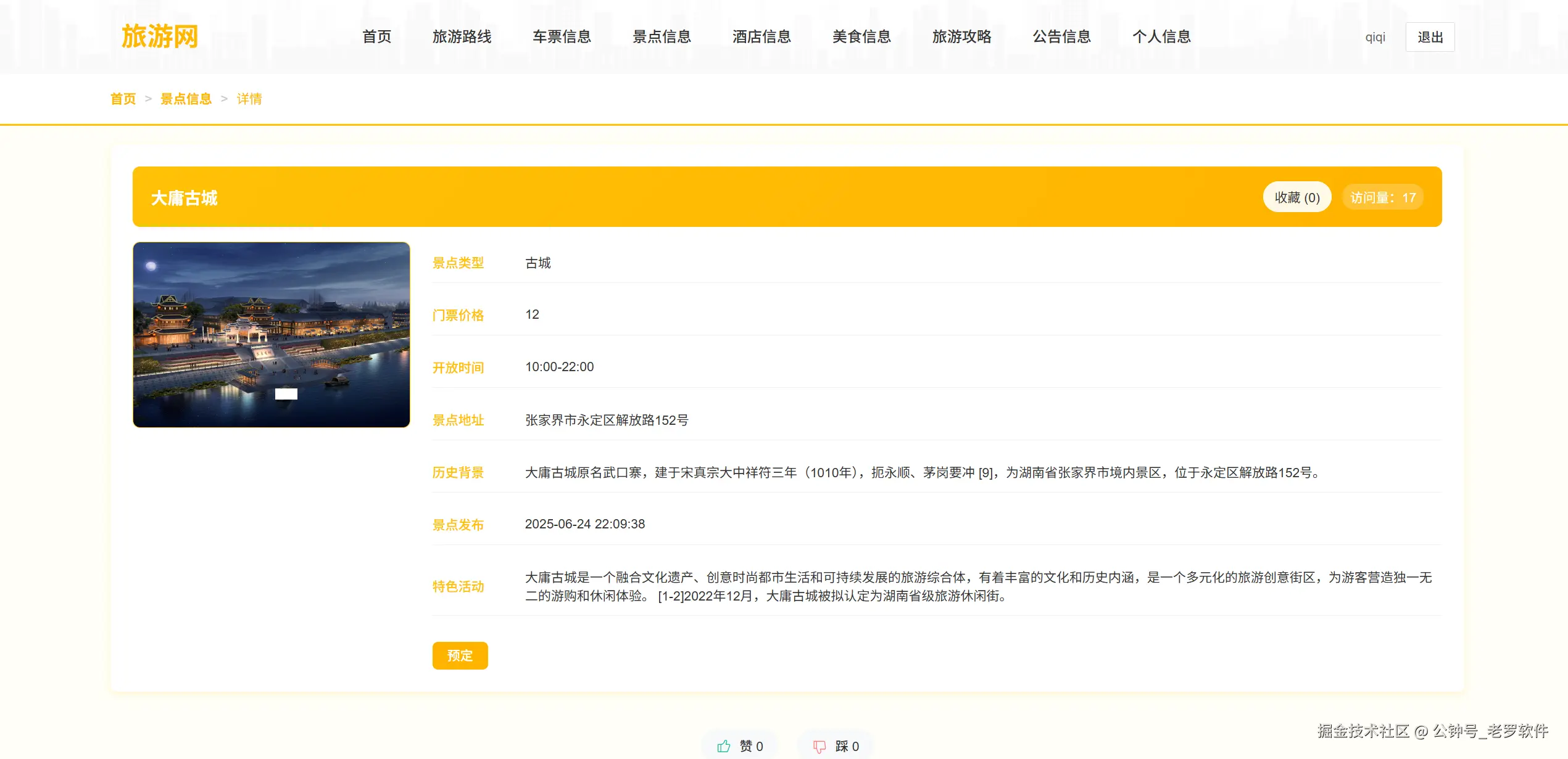 - 景点评论 :用户可以对景点进行评价和评论
