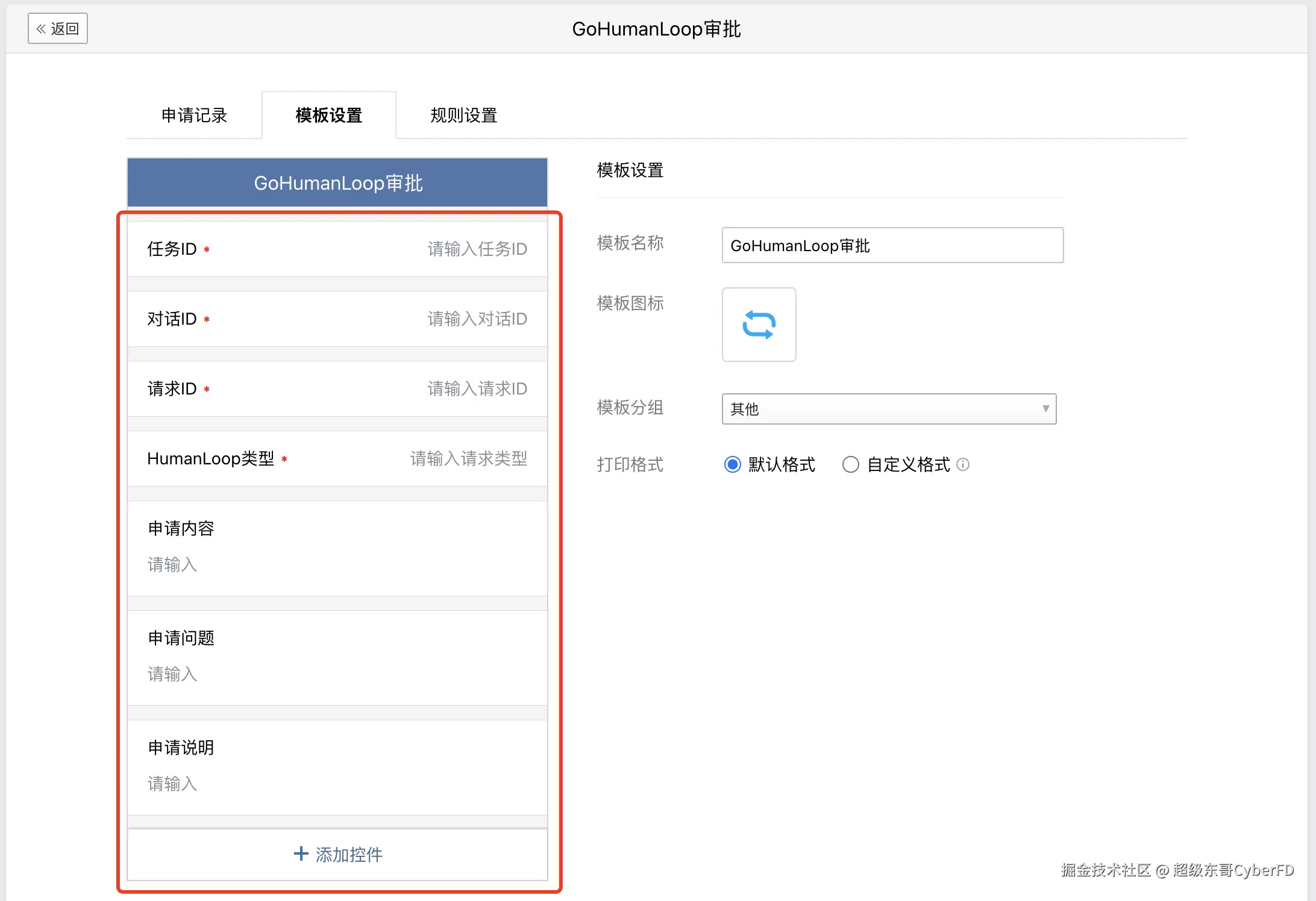 以上字段由 GoHumanLoop 库来传输并自动填充并自动发起审批流程