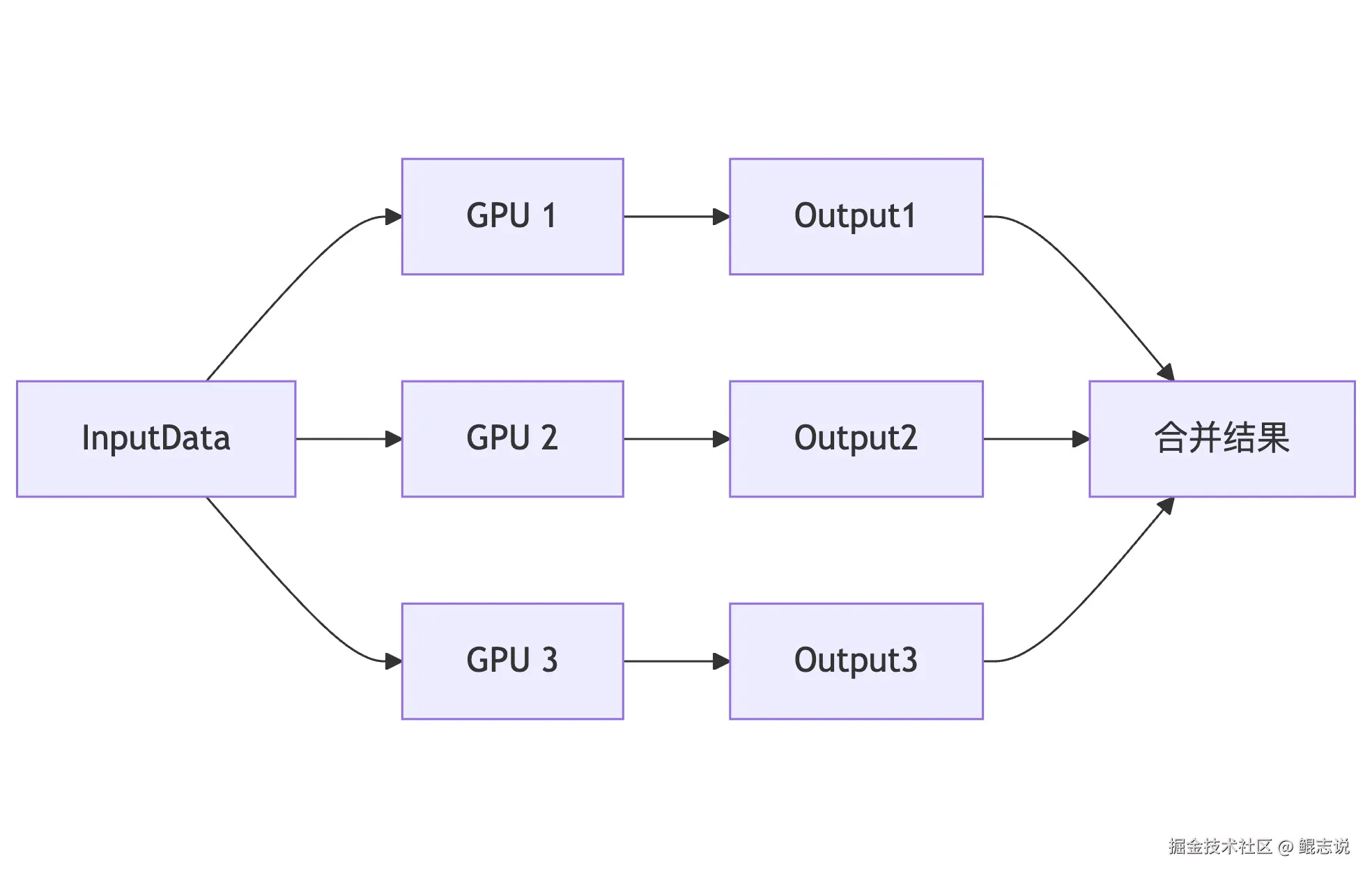 示意图:多 GPU 数据并行结构(Data Parallel)