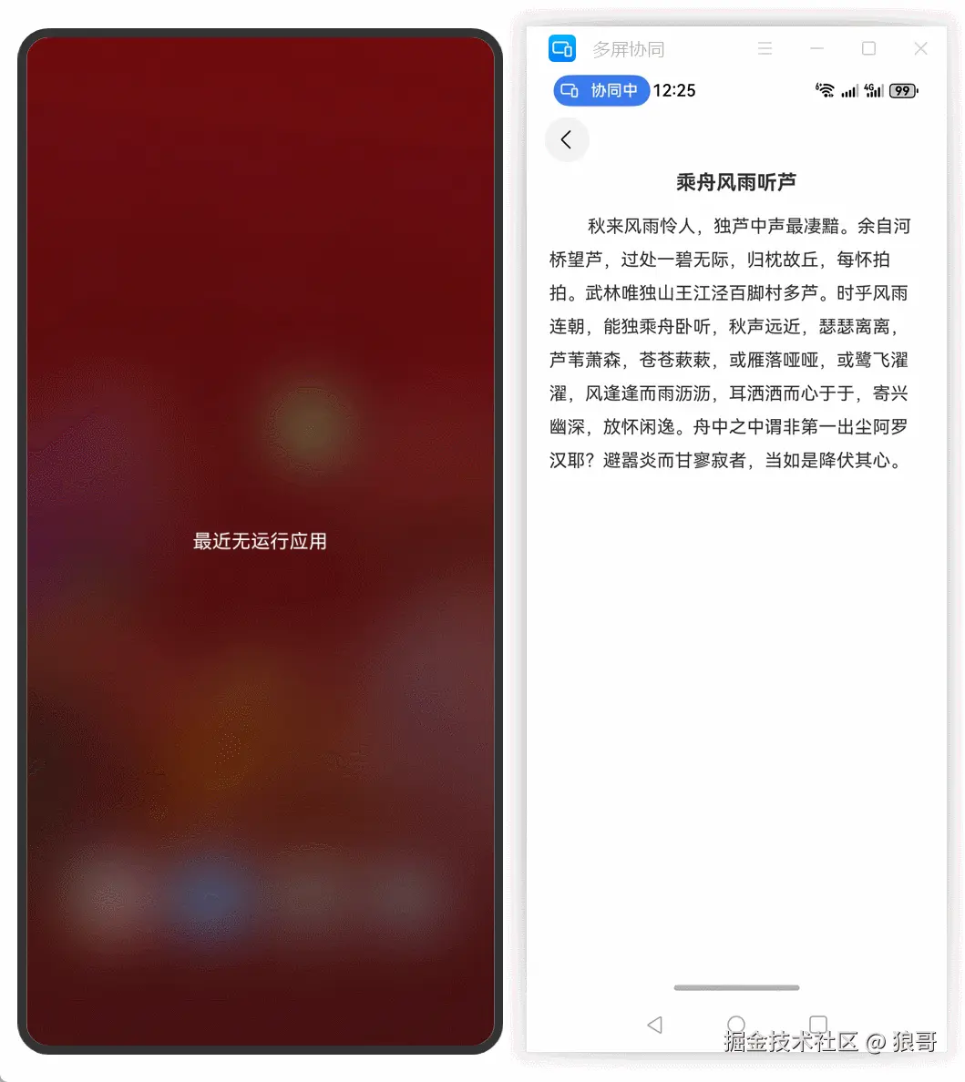在HarmonyOS分布式能力加持下,通过“碰一碰”实现古诗秒传的创新应用。用户只需将两台鸿蒙设备轻触,即可瞬间完成古诗内容传输与页面跳转,打造零门槛的跨设备文化共享体验。