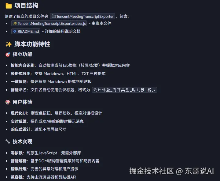 - 🔄 Tab切换支持: 支持在转写和纪要Tab之间切换时分别导出对应内容