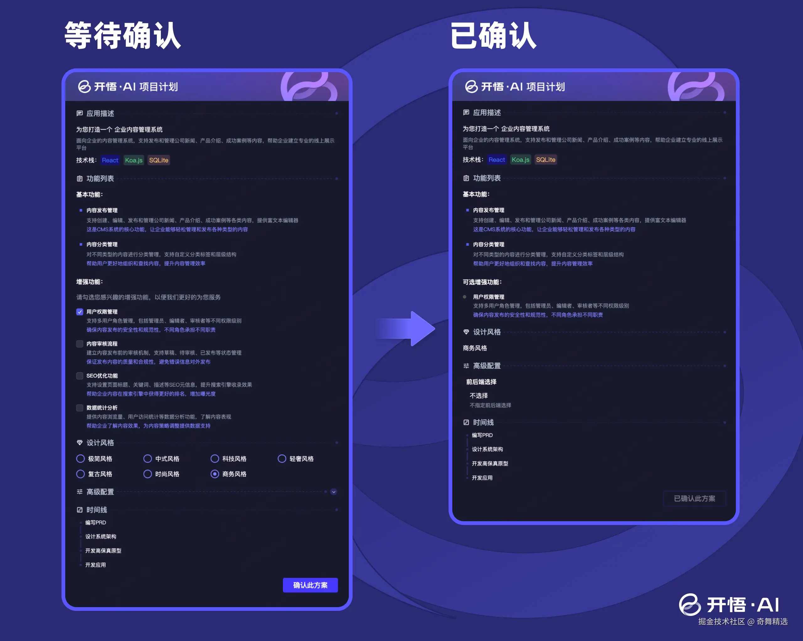 AI 技术的迅猛发展如今不仅让普通用户有了开发应用的机会,也对企业级开发带来了深远影响,我们希望能通过 开悟 AI 不但助力普通用户实现更规范、更高效的应用创建,更能为企业用户提供真正专业化、可信赖的产出,而不是供人消遣的「玩具」。