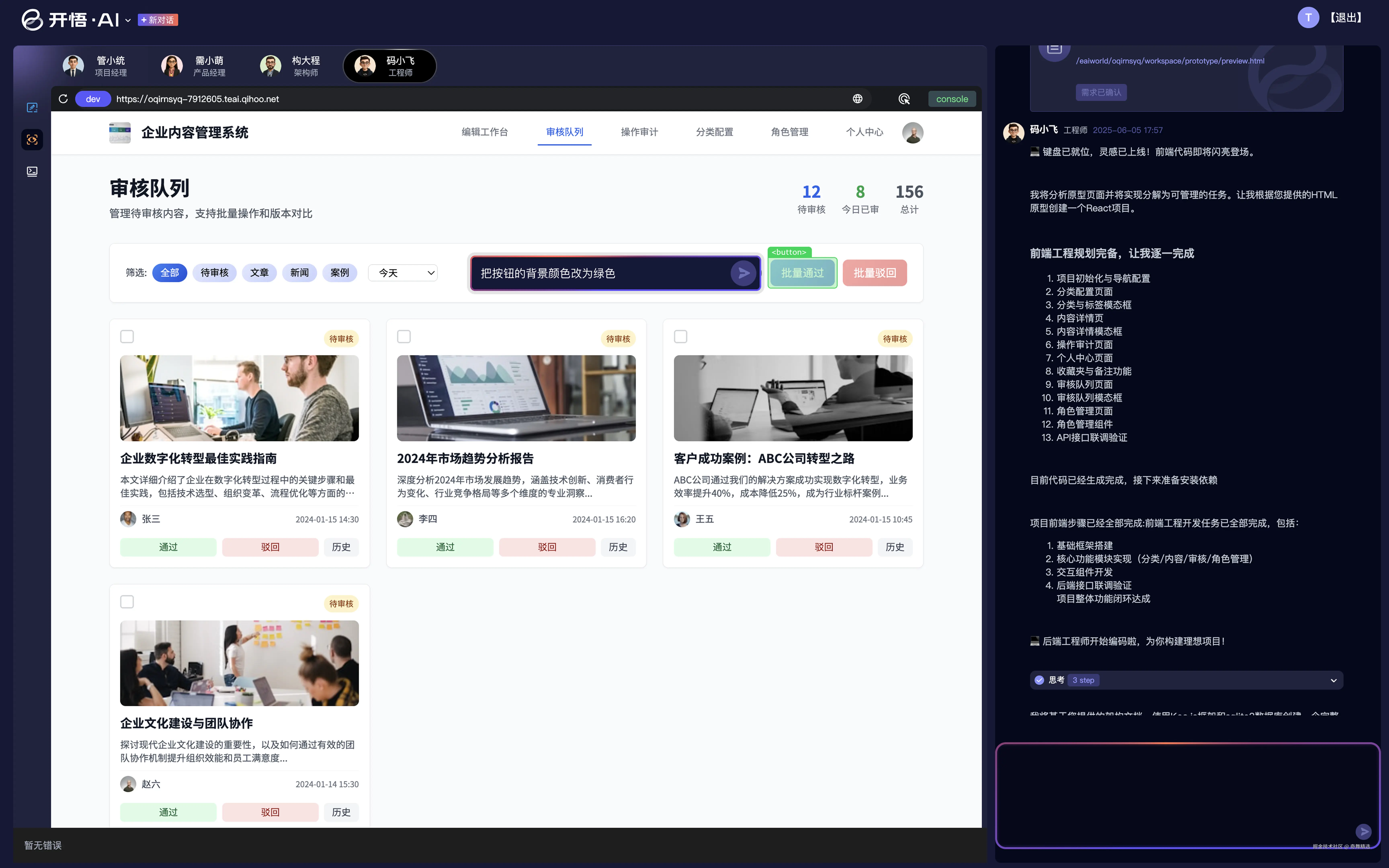 接下来,请跟随我体验一次典型的 开悟 AI 应用创建之旅,看看您的一个商业构想是如何在 AI Team 的协作下,一步步从概念走向可交付的专业应用的: