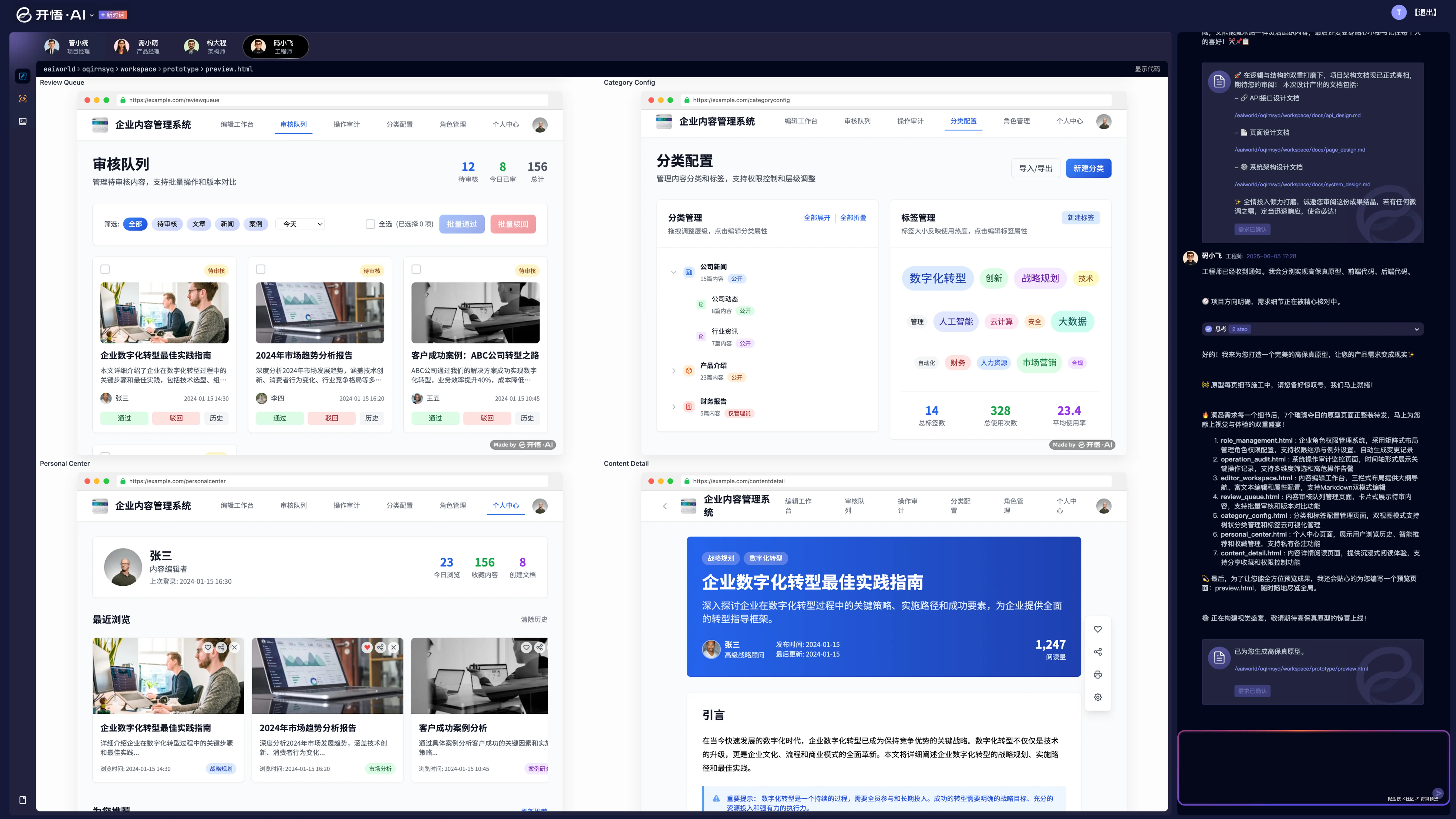 一切始于您的一个简单需求。比如,您对 开悟 AI 说:“帮我构建 CMS 系统,用于发布公司新闻、产品介绍、成功案例。”