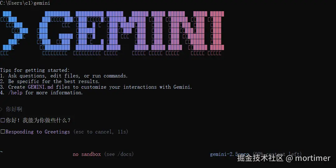 gemini启动后,你将进入一个交互式界面,可以直接输入问题或命令。