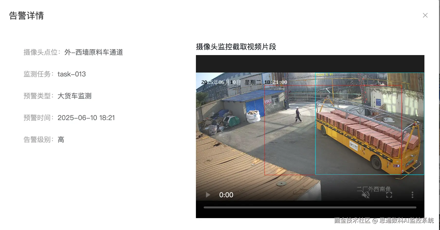 - 矿山反盗采:调用 “夜间工程车识别” 模板,3 天定制算法,精准识别挖掘机、卡车作业行为,识别准确率达 96%;