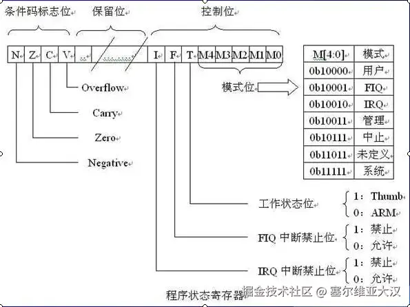 未定义模式(und):未定义模式用于支持硬件协处理器的软件仿真,CPU在指令的译码阶段不能识别该指令操作时,会进入未定义模式。