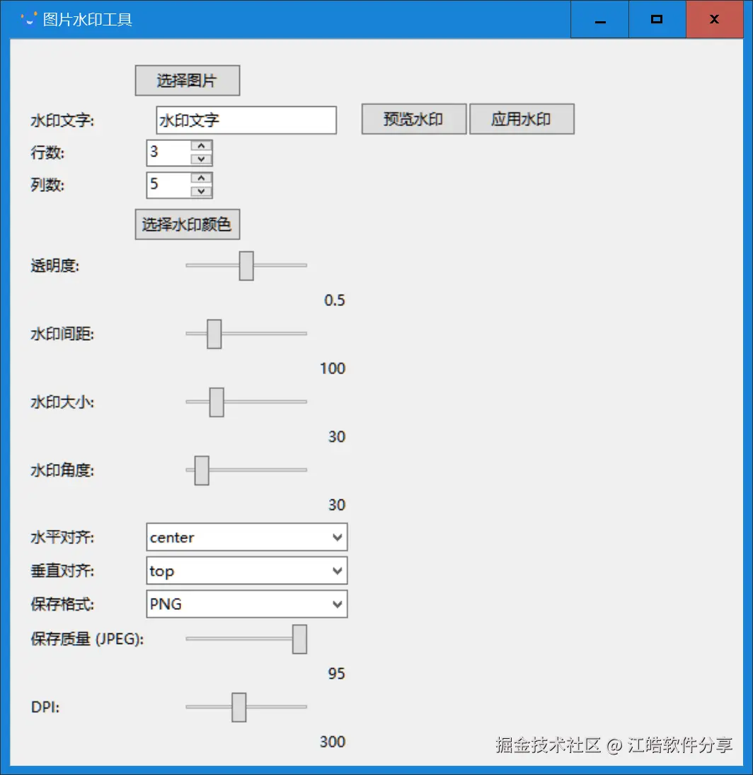 这是一款面向水印添加需求的技术型实用工具。界面设计干净直观,无任何广告或弹窗干扰,功能布局清晰,操作一目了然。