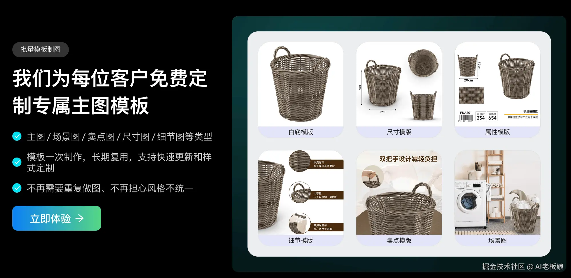 提供一张你现在的主图样式(比如含有尺寸、材质、商品编号等信息的图),ImageTop1 的团队会给你做成一个**“智能模板”**。